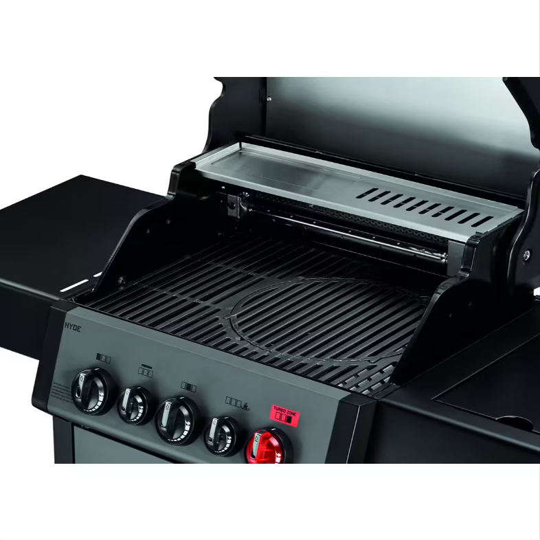 With the HYDE® series, you get everything you need for your next barbecue party. With the compact HYDE® 3, you are perfectly equipped for a cosy balcony evening. This barbecue brings equipment and power to any garden! With the 800°C TURBO ZONE™ and the infrared mesh, you can sear your food in no time at all. The infrared baking burner ensures juicy, crispy food on the spit. The SWITCH GRID™ cast iron grid and the practical side burner give you the freedom to grill anything you want. The viewing window always gives you a perfect view of your food.