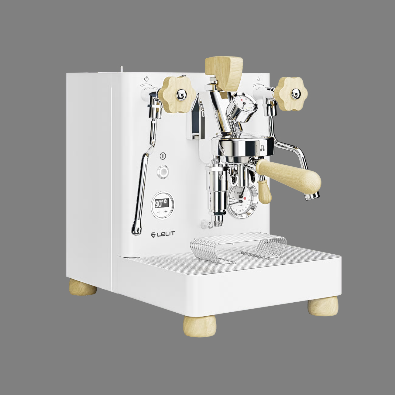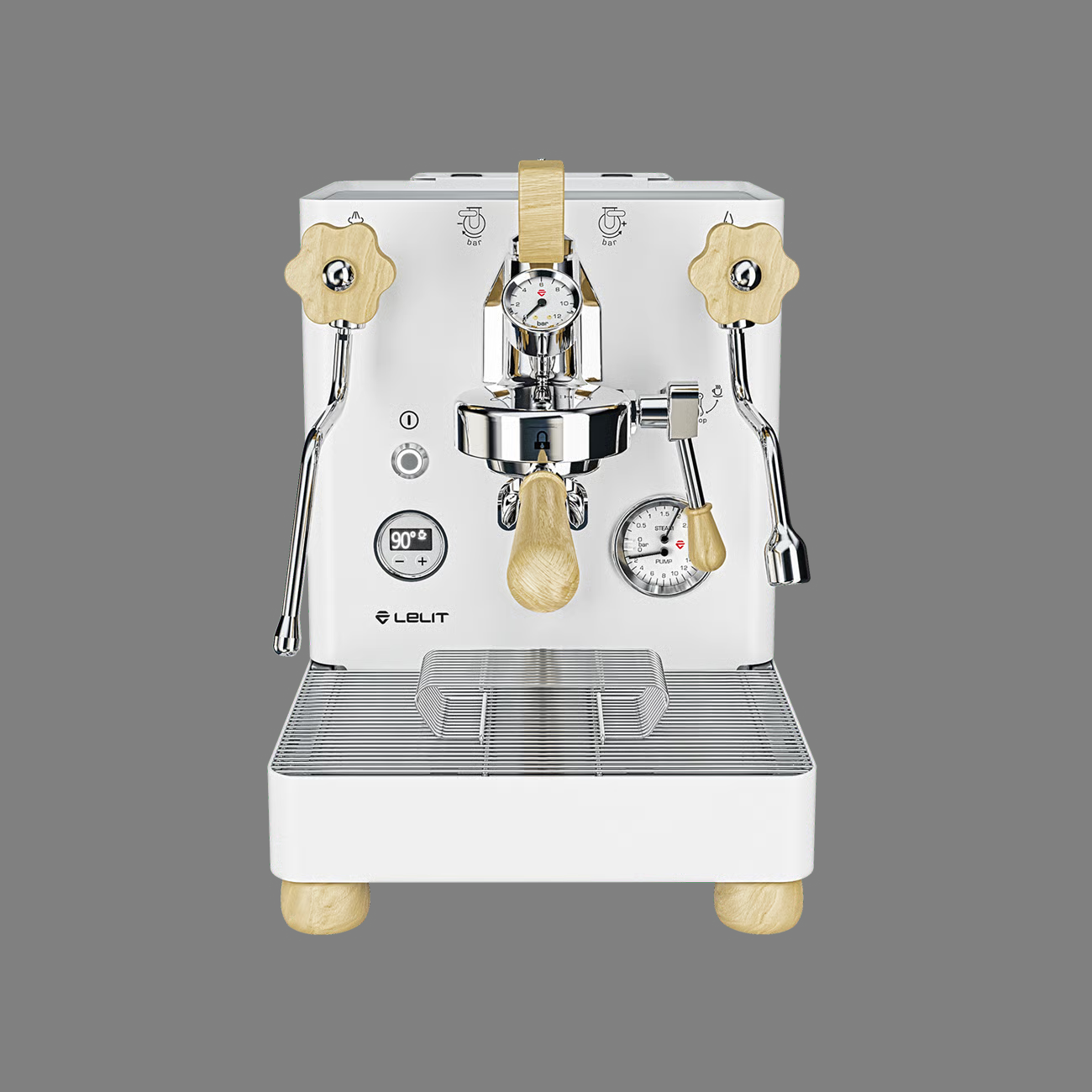 Coffee machine with L58E group and manual control of the water flow. The dual boiler ensures excellent thermal stability. Elegance and power come together in this outstanding piece of design. Also available in black and white versions, equipped with a new design drip tray, top-notch maple wood details and coloured appliance body with textured finish to give your coffee corner a touch of style.