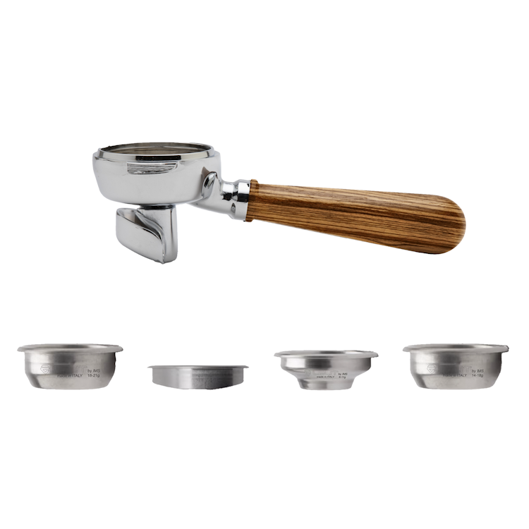 The ergonomic and functional handle is extremely pleasant to the touch, designed to guarantee a professional coffee extraction and shaped to facilitate the pressing. These portafilters are equipped with the Coffee Slide spout: it is designed with a thickness on the base to avoid contact with the worktop and its shape guides the coffee into the cup, enhancing its consistency and crema.