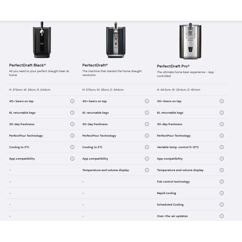 PerfectDraft® Pro brings the ultimate beer experience to your home with game-changing features including variable temperature control from 0°C – 12°C, app connectivity, fast cooling, a smoother pour, and improved temperature stability on the warmest of days.