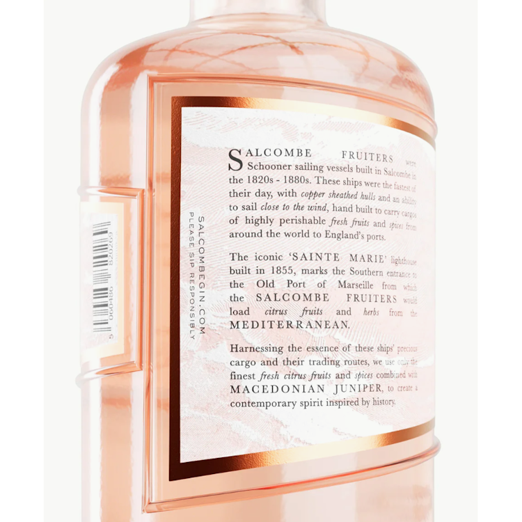 Escape to warmer shores with ‘Rosé Sainte Marie’, a dry rosé gin with no added sugar, featuring delicate flavours of fresh lemon peel, Provence herbs, pink peppercorns, and sun-drenched strawberries. Named after the iconic ‘Sainte Marie’ lighthouse, marking the Southern entrance to the Old Port of Marseille, from where 19th-century Salcombe Fruit Schooners loaded citrus fruits and herbs bound for England’s ports,