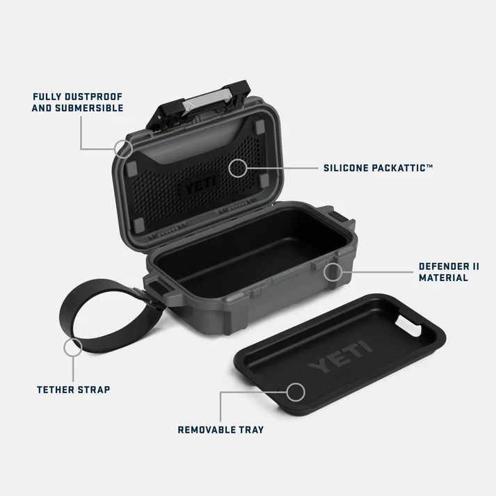 The ultra-durable tether strap easily loops and locks around the equipment you need it to, think saddles, skiff grab rails, or side ATV doors, and keeps the essentials on hand when you don’t have one to spare. Waterproof, dustproof, and virtually unbreakable, the GoBox® 1 is made with the same quality you’ve come to expect in an all-new, portable size.